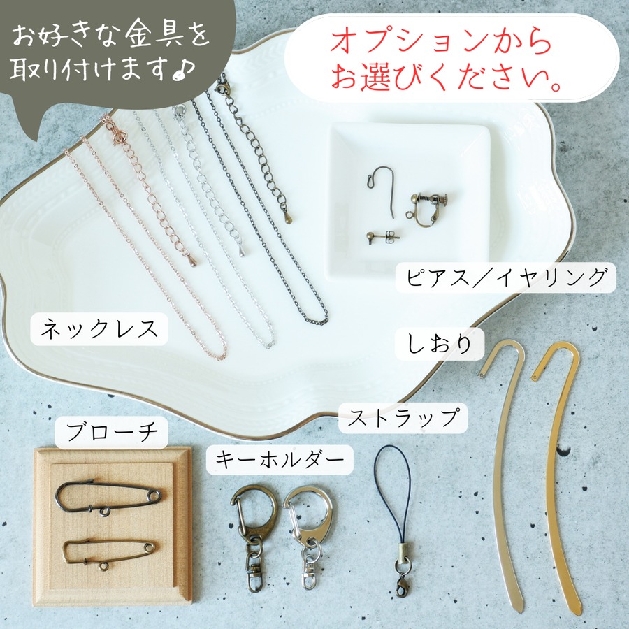 お好きな金具をお選びいただき、皆さまそれぞれの形でご活用いただけましたら嬉しいです。